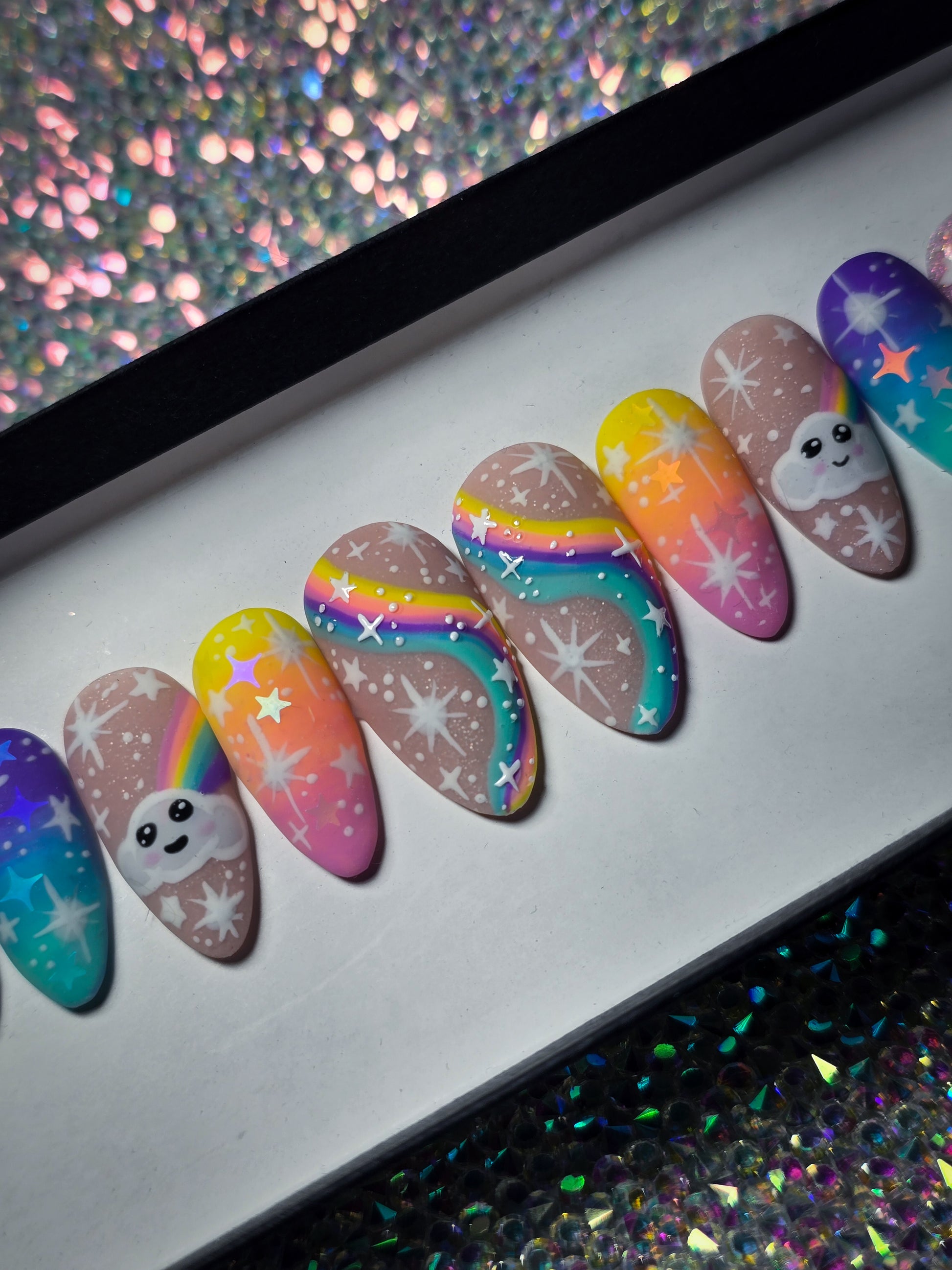Cloudy With a Chance of Rainbows Press on Nail Set