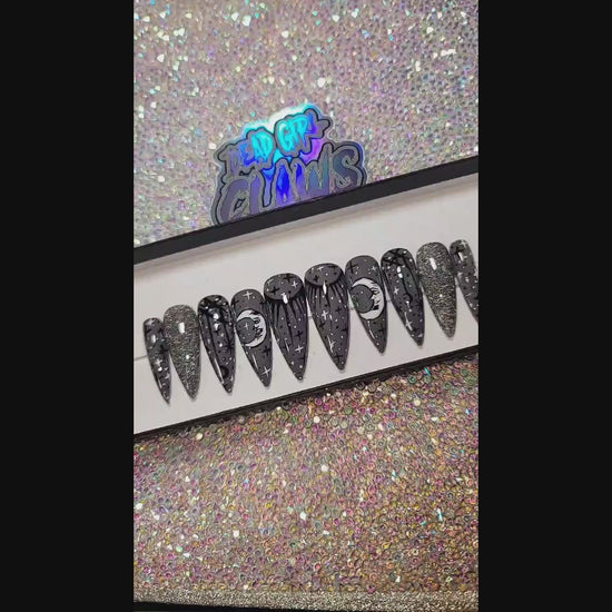 PLEASE REFERENCE THE VIDEO I ATTACHED TO MY LISTING OF THIS NAIL DESIGN. THE FIRST VIDEO IS SHOWCASING HOW THE SET LOOKS IN ROOM TEMP VS WHEN HEAT IS APPLIED ( I USED A BLOWDRYER FOR THE SAKE OF THE VIDEO) AND THE TWO VIDEOS AFTER ARE TO SHOWCASE THE DESIGN DETAIL AND THE GORGEOUS REFLECTIVE GLITTER AS WELL!